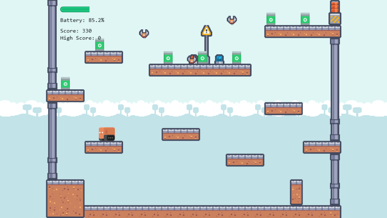Grab every green battery you can before your energy runs out. But beware, the humans have sent flying bots programmed to steal your power.