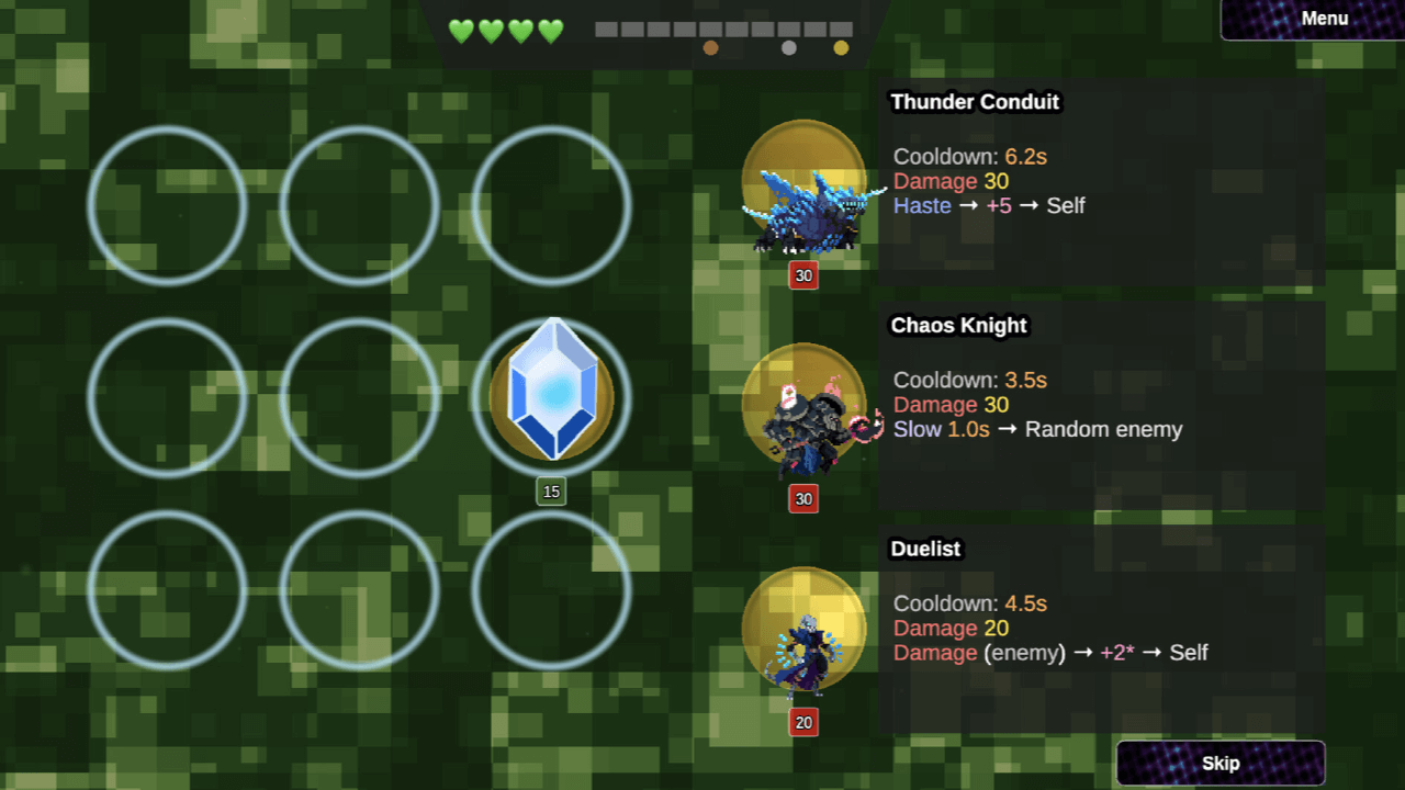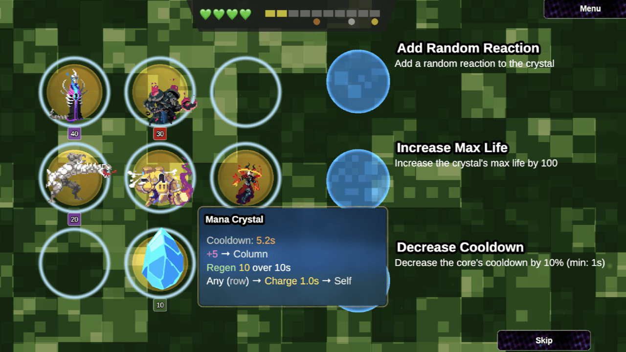 The objective is destroying the enemy crystal while protecting yours. Units cannot damage each other directly—they only affect crystals. This creates unique tactical decisions around unit placement and synergies.