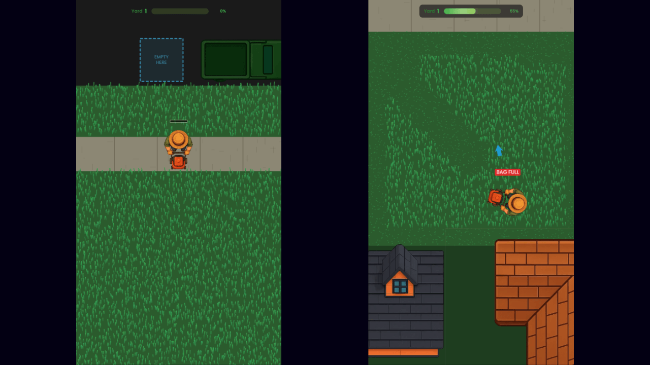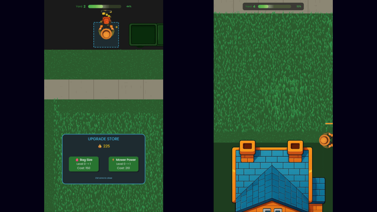 Miss a single grass patch and lose that perfect score. The game captures real-world lawn care satisfaction while challenging players to optimize their path.