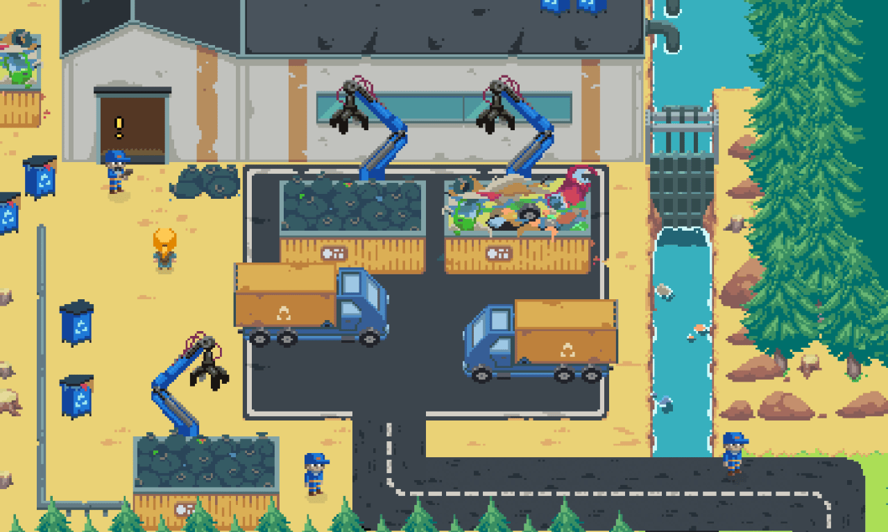 A: My goal was to show the consequences of the industries that underpin our digital world, our video games, which are far from being dematerialized, quite the opposite. We often talk about mining, and indeed, it's present in this game. But through the theme of river pollution, I wanted to focus on the exploitation, even the monopolization, of water in the digital lifecycle (devices, data centers, etc.). The village of Trois-Rivières is fictional. It has no connection to the city of the same name in Canada.